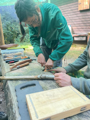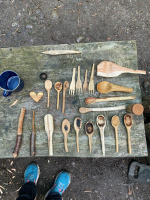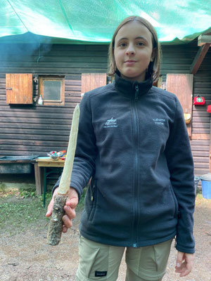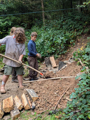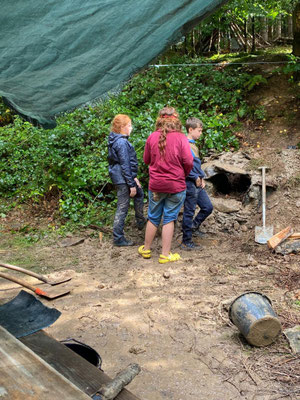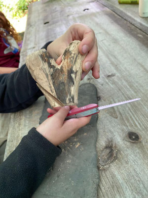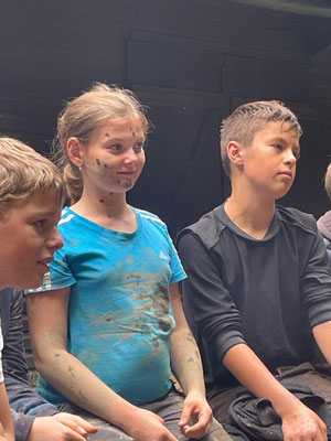 Danach war schnitzen angesagt. Hoch her ging es bei einer Lehmschlacht (es sollte nicht die letzte sein). So richtig schön mit Matsch! Kaum wiederzuerkennen waren danach die Abenteurer, alles war