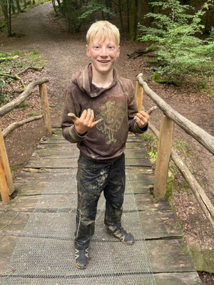 Und genauso dreckig ging es dann zum Parkplatz, wo die Teilnehmer von ihren Eltern abgeholt wurden. Vermutlich hatte das eine oder andere Auto danach eine intensive Innenraumreinigung