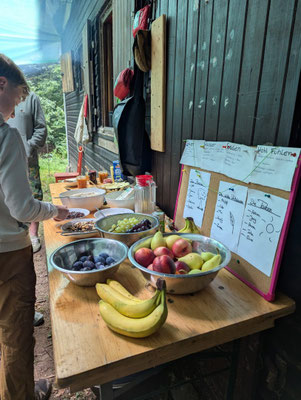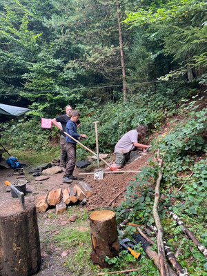 Erste Aufgabe war natürlich die Herrichtung der Schlaflager für die Übernachtung im Freien. Wegen des einsetzenden Regens übernachteten einige Teilnehmer in der Schutzhütte.