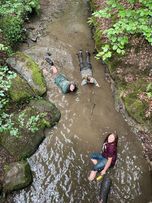 Sonntags morgens hieß es dann leider schon wieder packen. Es gab noch eine schöne Abschlussrunde. Und dann lebte die Lehmschlacht wieder intensiv auf, alle wurde nass und dreckig.